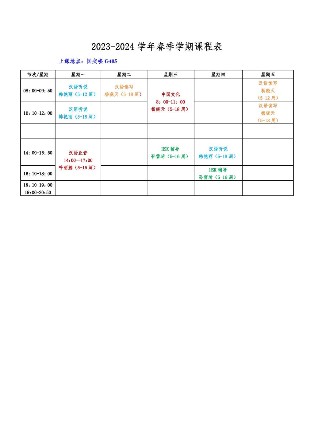 2023-2024-2学期高级汉语班(六级班)课表