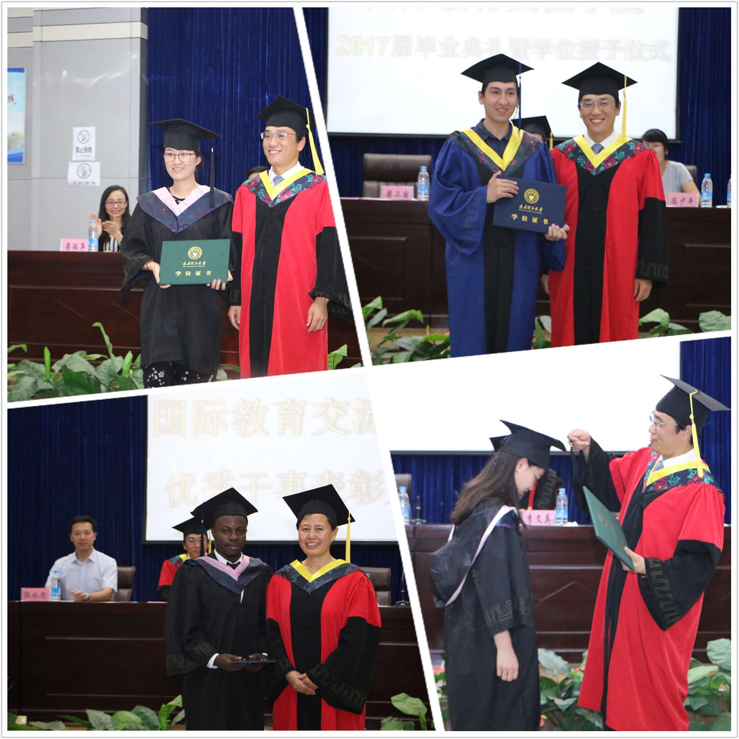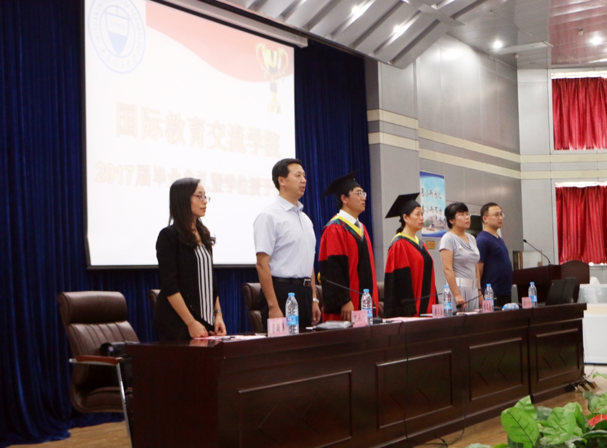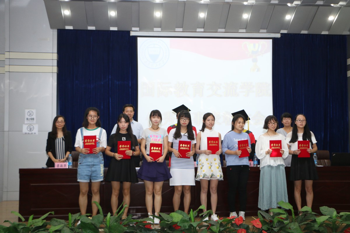 会议首先由院长李文英致辞。李文英对中外毕业生顺利完成学业表示祝贺,并对他们未来的发展表达了诚挚的祝福。陈少平和梁颖萍分别宣读了38名汉语国际教育系中国学生获得学位证书名单、1名获得硕士学位的留学生名单和44名结业的留学生名单,梁卫国和李文英分别为这些毕业生颁发了学位和结业证书。会议还先后对院级优秀毕业生、优秀国际学生、为运动会的举行做出突出贡献的中外学生、为学院争得荣誉的男女排球队、足球队队员进行了表彰。加纳籍学生邓肯和汉教专业学生贺家瑜分别代表中外学生进行了发言。他们在发言中,都回顾了自己的学习和成长经历,表达了对理工大学、对学院老师的感激之情并明确了今后的努力方向。