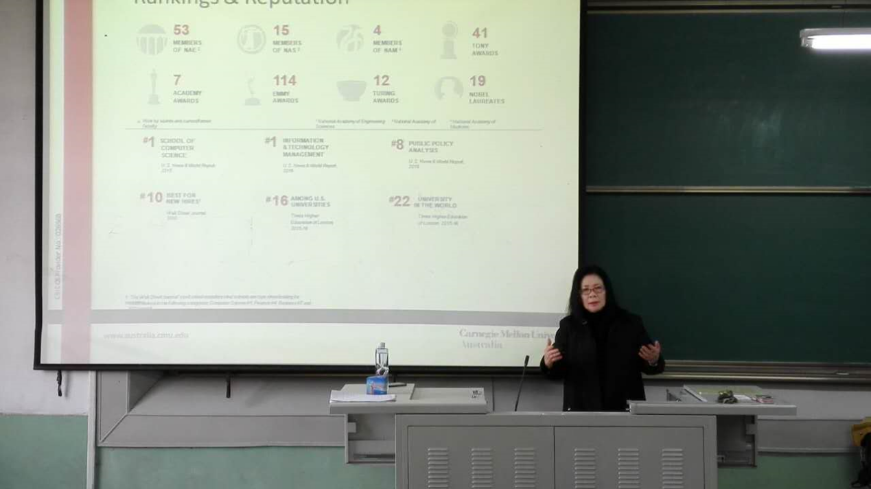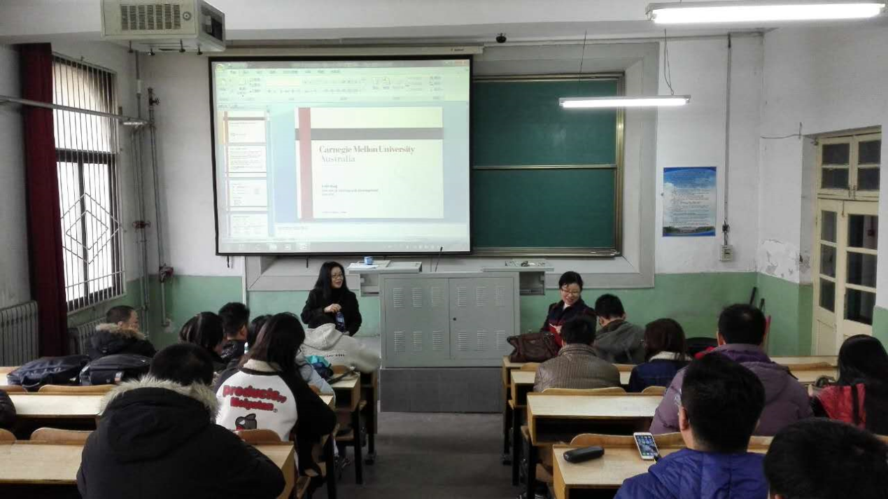 11月25日上午10点,应我院外联部邀请,思洋教育咨询(上海)有限公司董事长Christine Liu 女士前来我校,就美国卡耐基梅隆澳洲校区硕士项目及全球项目召开宣讲。此次宣讲会迎西校区在机械馆2103教室举行。国教院外联部相关教师、软件学院有意向出国留学的本科生及部分家长与会。