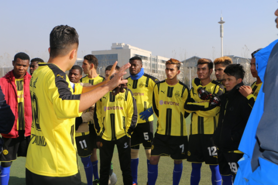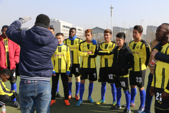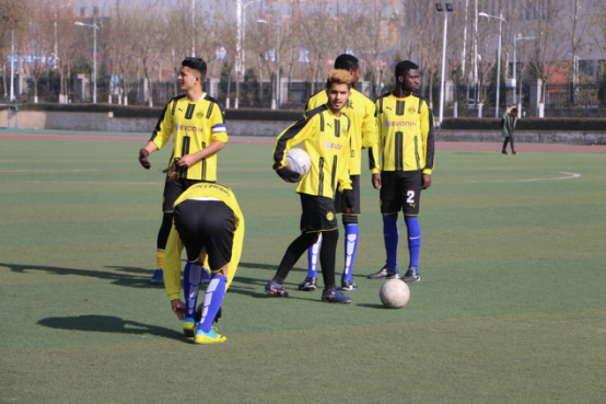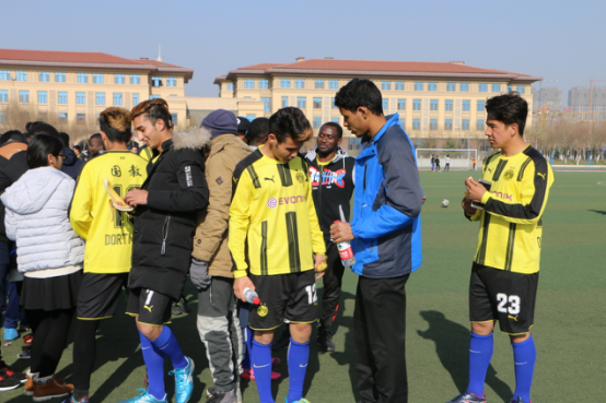 上午10:00,我院指导老师、学生会代表及留学生球员从迎西校区出发,于11:30抵达明向校区赛场。球员们完成常规赛前热身后,球队教练及队长分别对队员进行了比赛指导和策略部署。