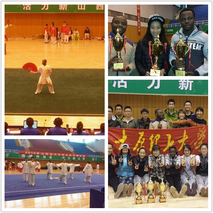 本月20日至24日,山西省大中学生武术锦标赛在山西中医学院体育馆内隆重举行,省内多个院校代表团展开了激烈角逐。理工大代表团十六名小将在经过充足的赛前训练后,在此次比赛中脱颖而出,取得了优异成绩,分获大学组男子团体总分第一名,大学组女子团体总分第二名,以及大学组团体总分第二名。其中来自我院的三位留学生表现抢眼,来自越南的陈明璇斩获自选太极拳、自选太极剑、三路长拳三项第一,来自莫桑比克的马卡洛荣获大学男子组太极器械个人奖项第五名。