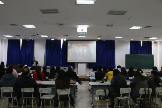 讲座过程中,赵老师带领大家观看了许多视频图片资料,为我们充分展示了他的生活工作环境。尽管在2013年刚刚恢复孔院运营时,只有一间不到30平方米的小教室,40个学生挤在里面上课,甚至最艰难时,8个老师挤在一个不足10平方米的小杂物间工作、生活。但因有那份执着和不泯信念的支撑,老师们坚持了一个又一个岁月,终于在2015年3月见证中国政府为中文系援建的教学楼正式投入使用。赵老师动情地说:“看到现在越来越好的教学环境,就觉得当初的所有付出都很值得。