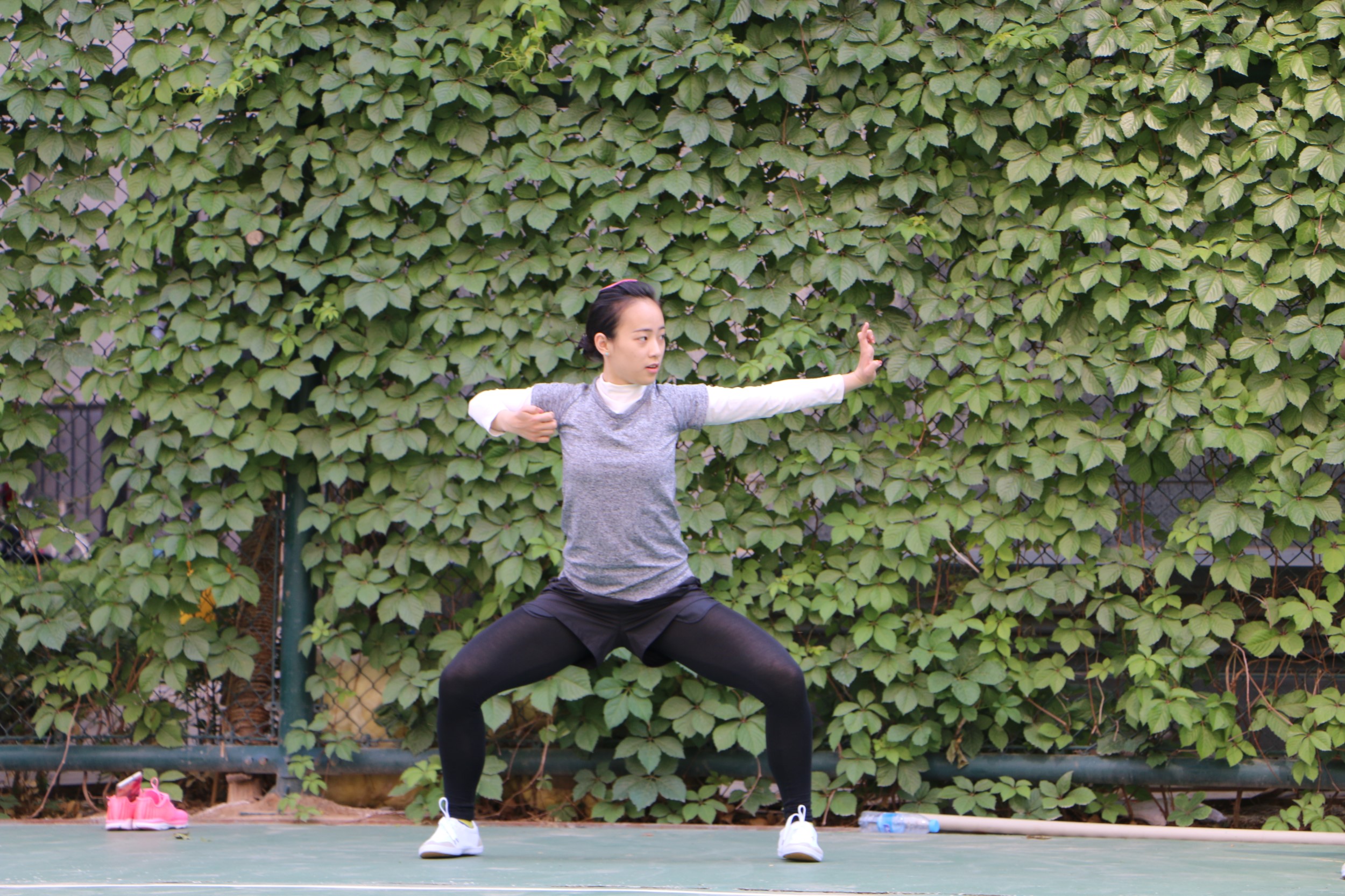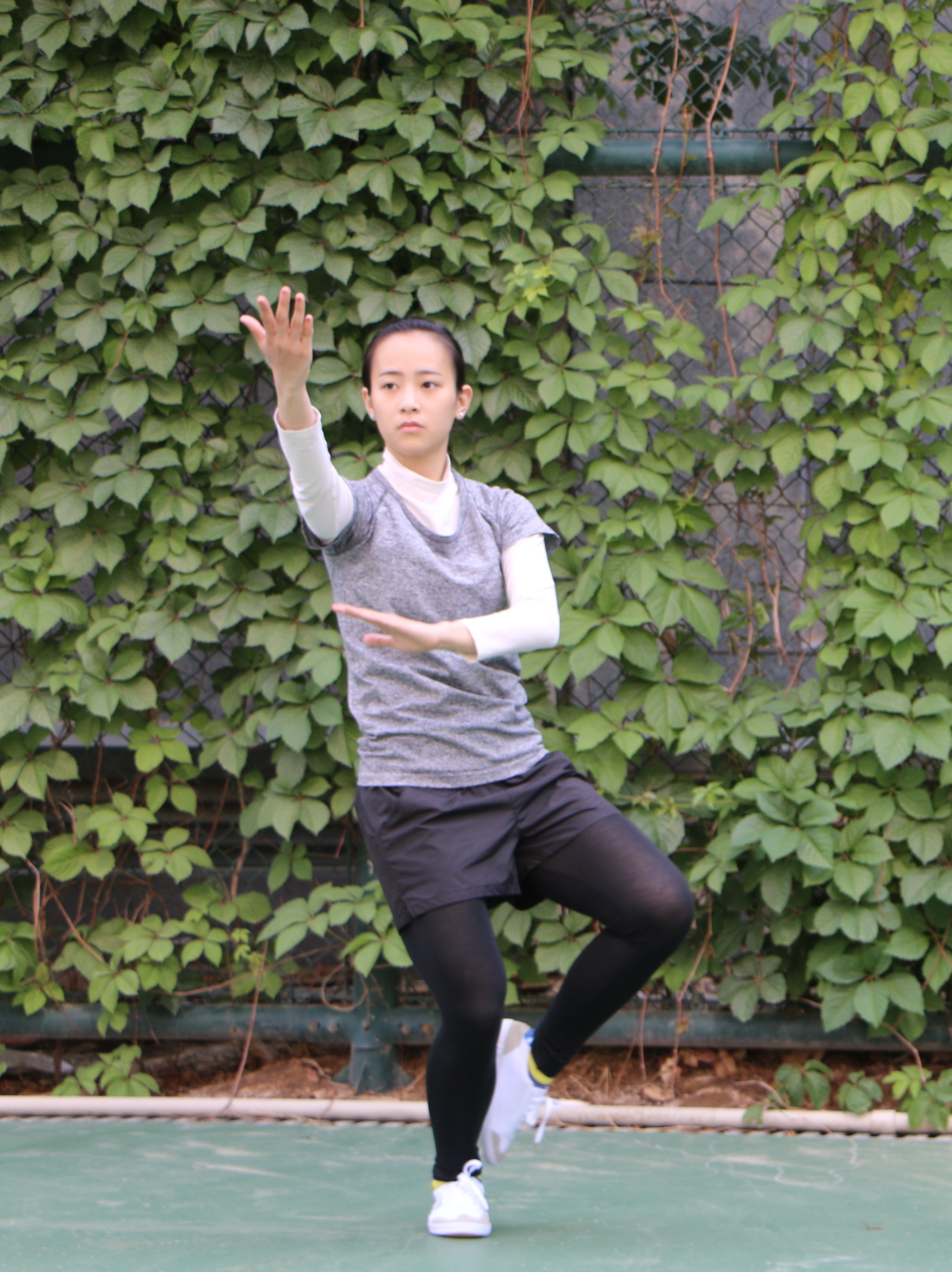 陈明璇在练习太极拳,为第二届在华留学生阳光运动文化之旅太极拳表演做准备。 韩晓云摄