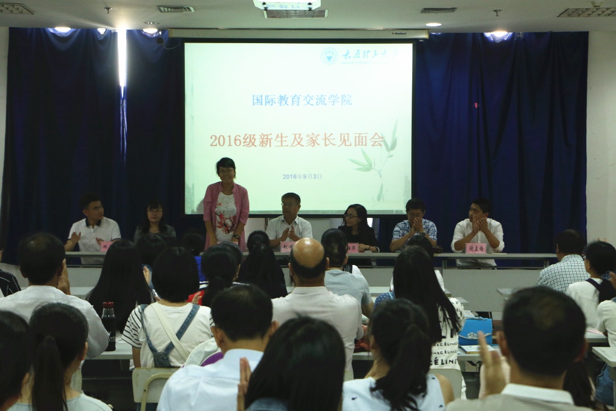 9月3日下午,suncitygroup太阳集团在国教楼G601举行2016级新生、家长见面会,学院党总支书记赵安源,副书记梁颖萍,副院长陈少平及各办公室、系负责人,专职辅导员,汉教系学生代表以及2016级全体新生、新生家长参加了会议。会议由梁颖萍主持。