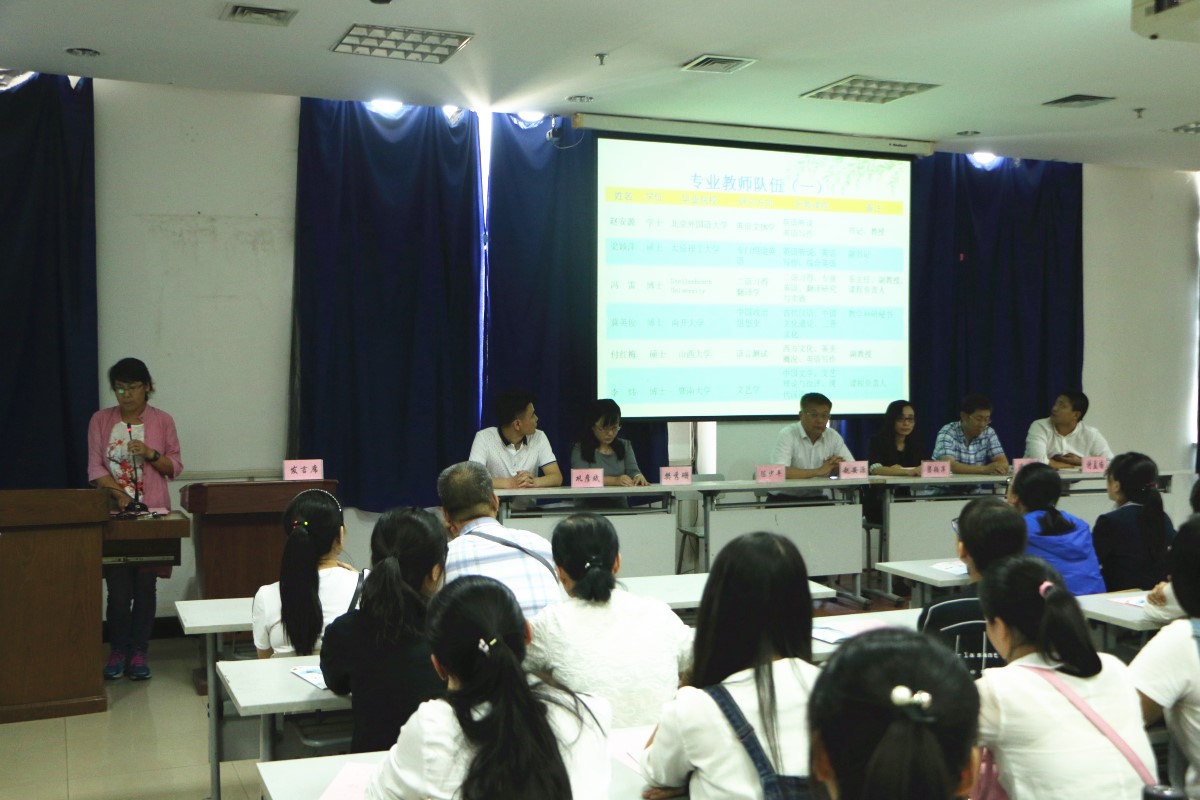 会议首先由赵安源介绍学院总体情况,并致欢迎辞。他在致辞中指出,感谢大家选择suncitygroup太阳集团,我们学院是一个团结奋进、朝气蓬勃的集体,同时也拥有一支高标准、严要求的教师团队。要达到预期培养目标,同学们需要付出更多的心血和努力,才不会虚度大学四年的好时光。随后,陈少平详细介绍了学院师资队伍情况和师资队伍的教学教研方向。汉语国际教育系主任冯雷介绍了专业培养目标,即“三双”:“双语言”并重,“双文化”传播,“双能力”培养,并介绍了毕业要求、课程设置、就业前景以及教学优势及成绩、丰富多彩的课外活动等内容,鼓励新生要明确目标,在毕业时,能够取得或者超越汉教系已取得优异成绩的优秀学生,圆满完成学业。学生代表徐淑婕也与新生分享了自己的学习心得,并就参加学生社团、参与文化活动等方面进行了经验交流,并以“如果你一直努力,最坏的结果不过是大气晚成”为结束,寄语自己的学弟学妹。