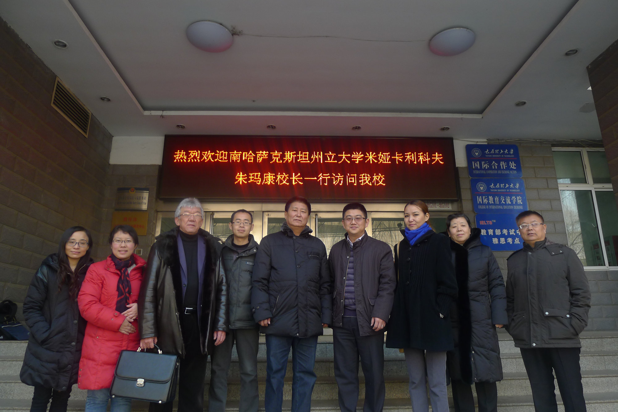 2016年1月9日至10日,哈萨克斯坦南哈萨克斯坦州立大学校长、国际合作处处长及科研院院长对我校进行了友好访问。双方在suncitygroup太阳集团综合楼会议室G207举行会谈,许并社校长出席致欢迎辞,国际教育交流院院长谢刚、副院长赵安源、留学生办公室主任梁颖萍及国际合作办学负责人张金萍、材料学院纺织工程专业魏丽乔教授、力学学院生物医学工程专业黄棣老师参加了会议,双方赠送礼物、合影留念。