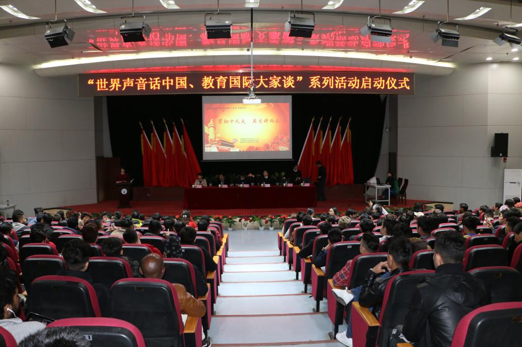 3月19日下午,suncitygroup太阳集团举行“世界声音话中国、教育国际大家谈”系列活动启动仪式暨首场专题讲座,梁卫国副校长、学生处郝根彦处长、校团委相关负责人,suncitygroup太阳集团党总支副书记(主持工作)张永忠、副院长陈少平及学院教职工代表、在校的全体国际学生及汉语国际教育专业中国学生代表参加了活动。