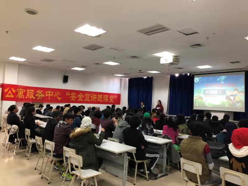 2018年10月26日下午4点,suncitygroup太阳集团2018级国际学生“入学教育”之:学生公寓安全宣讲在迎西校区国教楼六层G601教室开讲。公寓服务中心张文基主任、刘玉花老师、suncitygroup太阳集团党总支李文彬副书记出席讲座,约100名2018级国际学生参加宣讲。