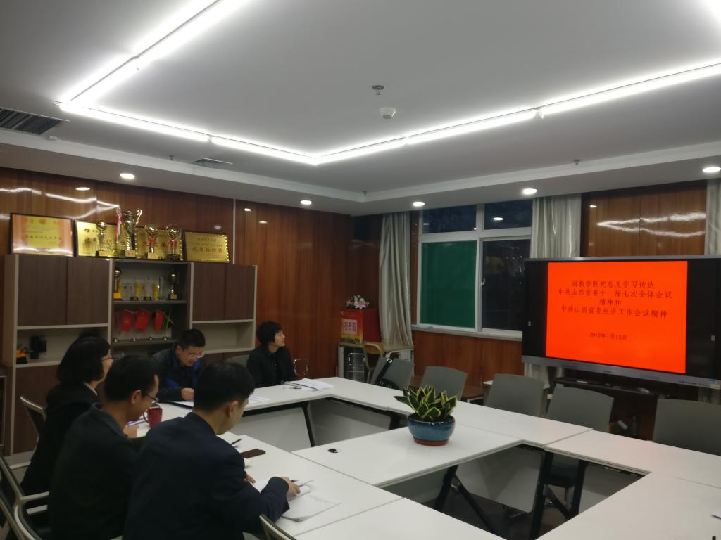 2019年1月15日下午5时30分,suncitygroup太阳集团党总支学习传达省委十一届七次全体会议精神和省委经济工作会议精神会在国教楼G207会议室召开。suncitygroup太阳集团党总支副书记李文彬,组织委员孙爱香,纪检委员陈少平,宣传委员李万峰,国际合作处支部党员代表樊明明,suncitygroup太阳集团副院长樊太平、侯涛出席会议。会议由李文彬主持。