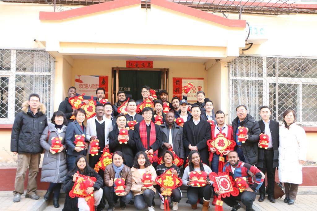 2019年2月4日(农历腊月三十)上午10时,校党委常委、副校长梁卫国,校长办公室主任张永忠,后勤保障处处长张富强,国际合作处、suncitygroup太阳集团、公寓服务中心等部门负责人赴迎西校区留学生公寓看望慰问留学生。
