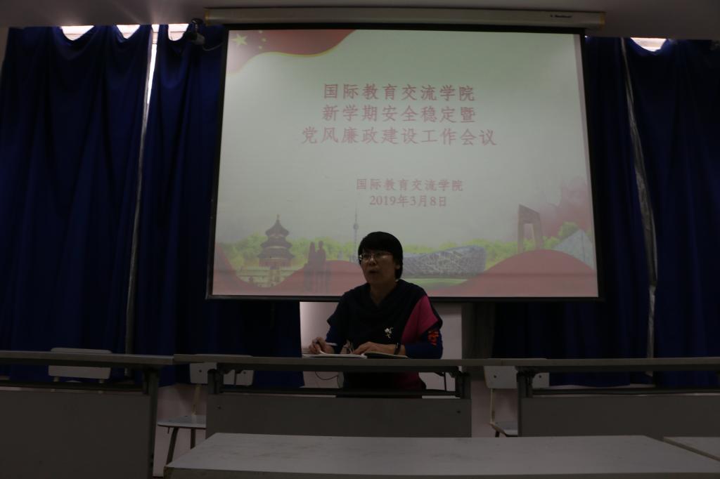 会议开始,李文彬传达了校党委《关于切实做好新学期开学及全国“两会”期间学校安全稳定工作的通知》(校党【2019】1号),带领学习吴玉程、翟健同志在校全面从严治党工作会议暨纪委二届四次全会上的讲话。接着,侯涛结合分管工作,强调了海外考试考务人员守岗履职的严肃性,并通报了2019年度国际学生招生工作的最新进展;樊太平表达了对优化教学、办公设施,提升工作效率的愿景。之后,陈少平结合当前热点话题,详细解读了校党委教师工作部《太阳成城集团师德师风负面清单和失范行为处理办法》,通报了二级绩效分配、学院阅览室运行及网站建设、师资队伍及人员部署等议题的最新进展,并对照相关文件,对申报汉语国际教育硕士学位点作初步构想。