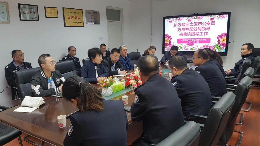 4月12日上午,太原市公安局万柏林区分局副局长张军一行来suncitygroup太阳集团调研,千峰派出所负责人陪同调研。suncitygroup太阳集团副院长(主持工作)陈少平,党总支副书记李文彬,副院长樊太平,国际合作处办公室主任樊明明参会。
