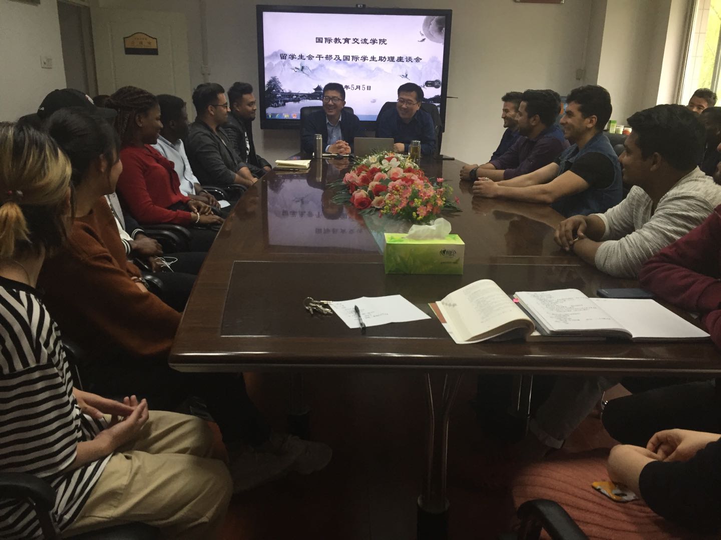 5月5日下午,suncitygroup太阳集团在国教楼G209会议室召开留学生干部座谈会。学院党总支书记赵国俊、副书记李文彬、团委书记牛倩及20余名国际学生参加会议。会议由李文彬主持。