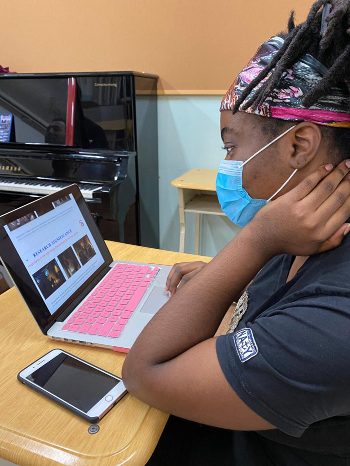扎着一头“脏辫”的楚悦哲性格活泼,她来自尼日利亚,是山西大学计算机专业二年级研究生。疫情发生初期,她的妈妈每天打三个电话催她回家。“我通过视频让她知道学校做了很多事情保护我们的健康。”楚悦哲说,导师安排的任务在宿舍就可以完成,想运动的话可以到活动室健身,每天的生活都很规律。