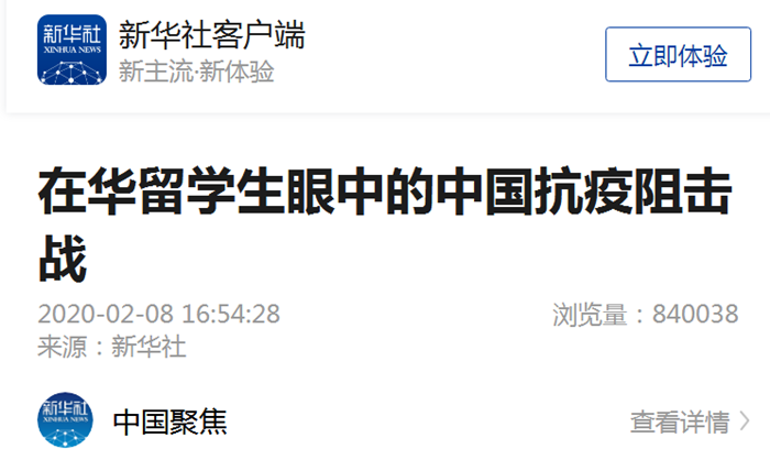 “我从来没见过像中国这么强大的动员力,全国各地快速驰援武汉,十天建成一座1000个床位的医院。”亚历山大说,“我认为没有什么困难能够击败中国人民!”