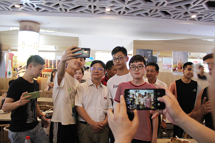 在迎西校区民族餐厅,郑强认真查看了食堂窗口的饭菜品种、质量、标价等,了解了餐厅窗口的运行状况,并就饭菜种类、食堂管理、食品卫生安全等提出了具体要求。正值午餐时间,前来民族餐厅内就餐的学生熙熙攘攘,郑强与学生们亲切交谈,一一询问大家对饭菜的评价和就餐的体验,并坐下来与学生共同就餐。热情的民族学生们向他献上了具有本民族特色的花帽和洁白的哈达,向老师表达教师节的美好祝福。