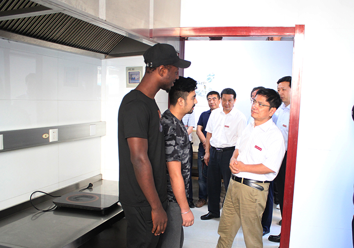 郑强首先来到虎峪校区留学生公寓,详细查看了留学生生活和住宿环境,亲切询问了留学生的国籍、专业、学习情况等,希望留学生们保持身心健康,互相帮助、和睦相处,珍惜宝贵的来华学习机会,努力学好汉语,学好专业,热爱中华文化,在学校度过充实而快乐的留学生活。