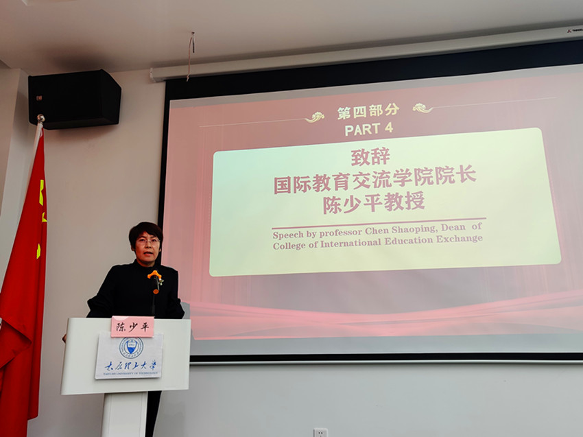 吕永康在致辞中对来我校就读的269名国际学生表示衷心祝贺。他向大家介绍了我校的办学历史及近年来的发展成就,并希望大家以胸怀天下的世界眼光了解中国文化,磨砺品格、不言放弃,学会感悟人与自然和谐共生,秉持“求实、创新”校训,以更大的勇气和更积极的心态去追求挑战、丰富人生,在太阳成城集团这片沃土上盛开青春之花,在新的征程中华丽蜕变。