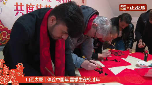 2月11日,农历大年三十,一大早,我校迎西校区学生公寓九号楼处处洋溢着喜庆的节日氛围,留校过年的中外学生欢聚一堂、共话年味。当天上午,《央视新闻》“牛气‘食’足 寻味年夜饭”栏目对此进行了全程直播,赢得了国内外社会各界的广泛关注。
