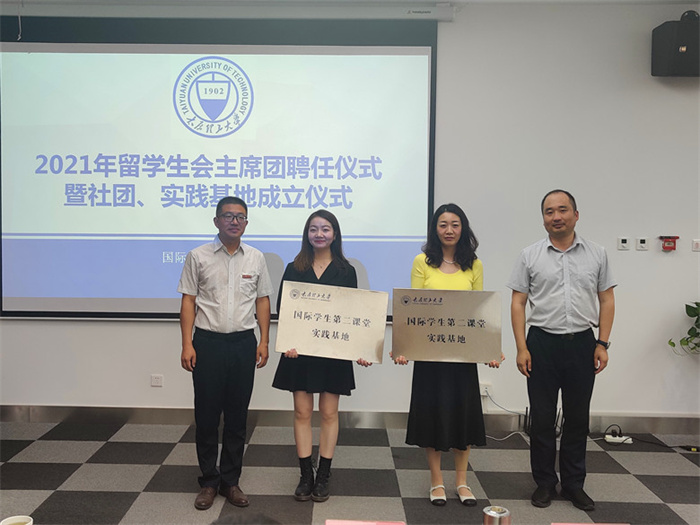 活动中,贾支正为校留学生会主席团成员颁发聘书,李文彬为国际学生社团指导教师颁发聘书,二人共同为国际学生第二课堂实践基地授牌,首批实践基地将设在轻纺工程学院、艺术学院。