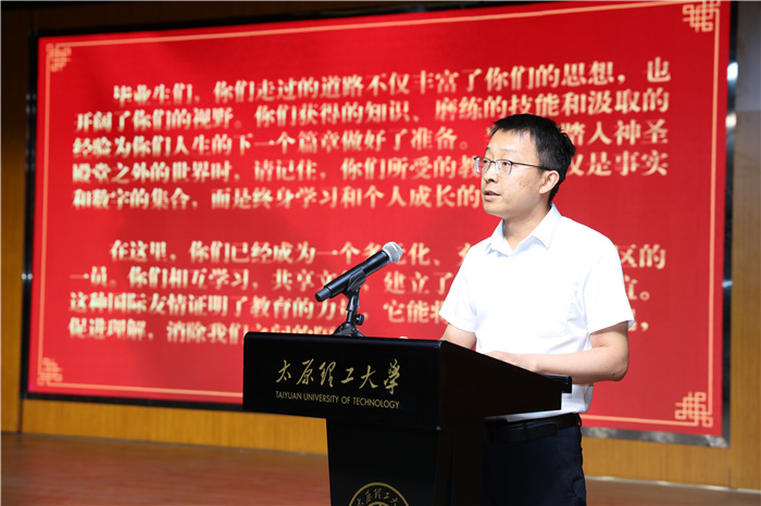 杨翼代表学校向全体毕业生顺利完成学业表示祝贺,并寄语毕业生牢记“求实、创新”校训,带着“开放包容、美美与共、贵和尚中、天下为公”的文化基因走向世界,在“百年未有之大变局”和充满竞争的时代苦练内功、施展才华,开创属于自己的精彩人生。他勉励同学们用亲身经历讲好客观、真实、精彩的中国故事,以更加包容的姿态架起中外人民友好的连心桥,为推动构建人类命运共同体贡献力量。