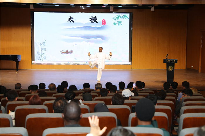 在文体汇演环节,2024年中国大学生武术套路锦标赛获奖者、经济与管理学院硕士研究生MAPOSSE CARLOS NEHEMIAS(中文姓名:马可,国籍:莫桑比克)为大家带来一套完整规范的二十四式太极拳,展示我校国际学生对中国优秀传统文化的热爱和新时代国际青年的良好风貌。文法学院本科生LARDSAVONG SEESAWART(中文姓名:王龙,国籍:老挝)深情演唱《十年》,生物医学工程学院硕士研究生JAMES OCLOO OSCAR SENANU(中文姓名:奥斯卡,国籍:加纳)、土木工程学院本科生OKAFOR VICTORIA ONYEKACHUKWU(中文姓名:任薇雅,国籍:尼日利亚)共同带来钢琴伴唱See You Again,婉转动人的曲调和悠扬的歌声诉说着依依惜别情,引发全场共鸣。
