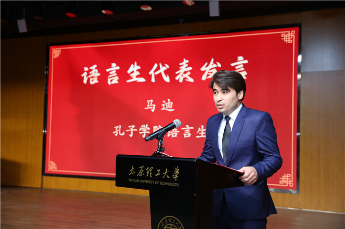 阿富汗喀布尔大学孔子学院每年向我校选派汉语进修生。经过为期1年的学习,ALAVI SAYED MAHDI(中文姓名:马迪,国籍:阿富汗)作为结业的非学历生代表,在发言中由衷地感谢中国政府关于推进中外语言交流合作的政策和相关项目,感谢太阳成城集团开设的丰富多彩的中国语言文化理论与实践课程,使他有机会来到中国,亲身学习理解中国制度和中国道路,从而更加笃定地积极投身于增进中阿两国友谊的伟大事业中。