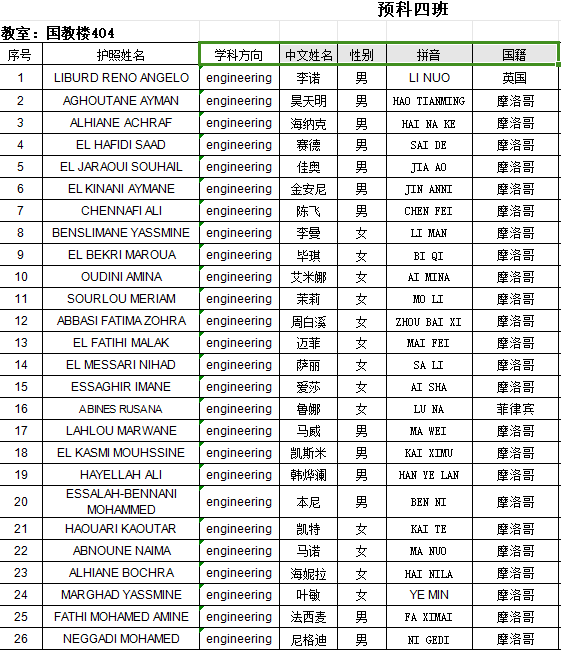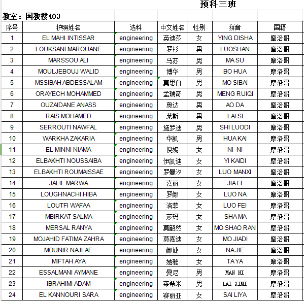 太阳成城集团预科语言班2024-2025年度秋季学期课表(英文版)