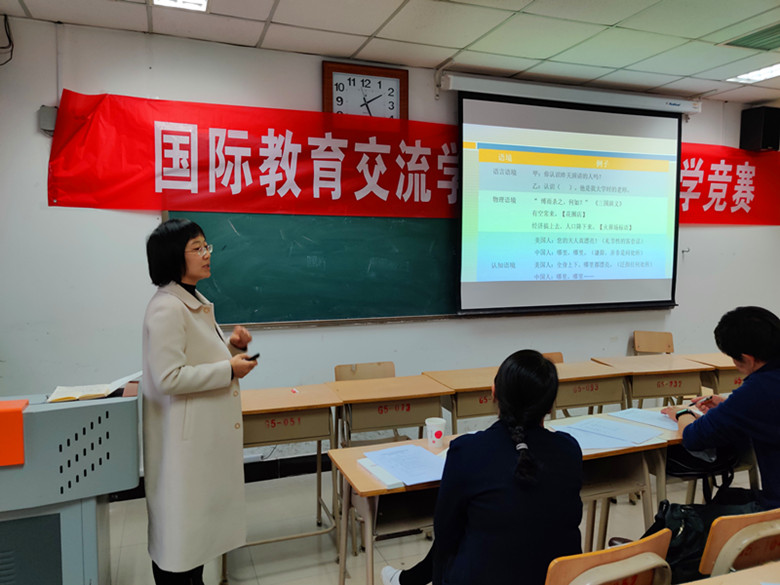为引导青年教师进一步强化立德树人理念、锤炼教学基本功、提高教学业务能力与水平,suncitygroup太阳集团于11月1日下午在国教楼G501教室举办青年教师教学竞赛。竞赛由校教学督导组成员卢邵刚、suncitygroup太阳集团院长陈少平、党总支副书记李文彬、汉语国际教育教研室主任赵丽萍担任评委,全院10名青年教师参赛。竞赛由汉语国际教育系副主任李炜主持。