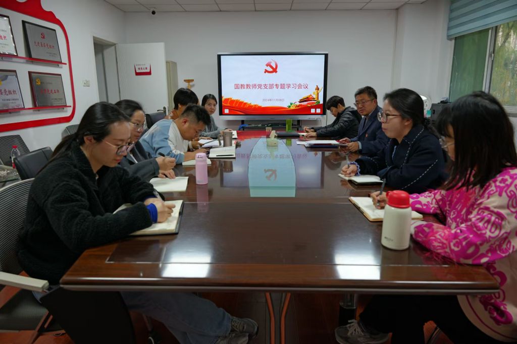 为深入学习贯彻习近平总书记关于教育的重要论述,进一步提升党员的理论修养,11月8日下午,国教教师党支部在G207召开支部专题学习,集中学习习近平总书记《论教育》。本次会议由支部书记张燕主持,全体党员同志参加。