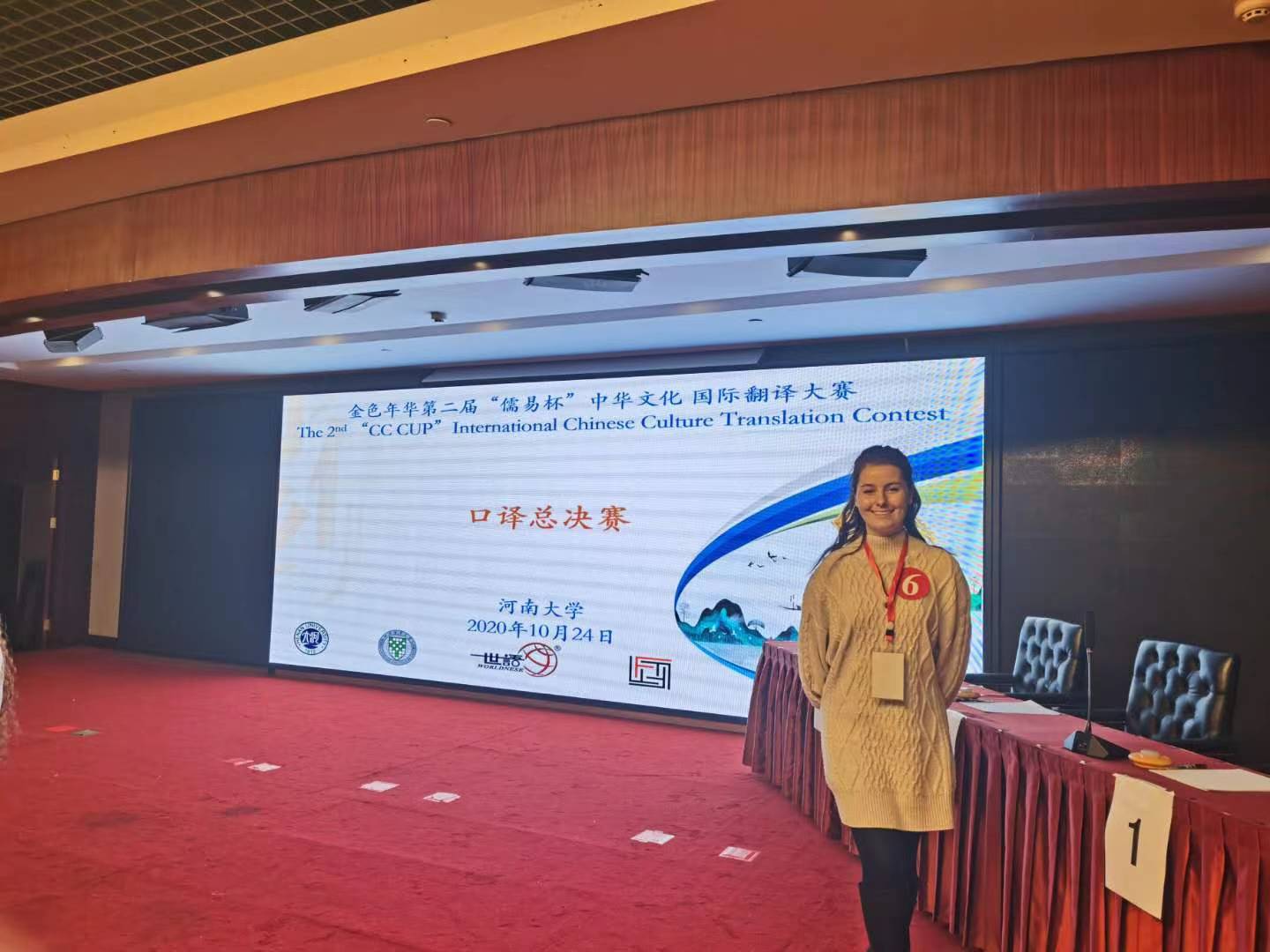 O’SULLIVAN DEVIN GRACE来自美国,自2019年在我校攻读外国语言文学硕士学位,作为一名中国政府奖学金生,她一直以严谨的科研态度潜心学术研究,并积极参加各种专业竞赛来提升自己的水平,在第九届全国口译大赛(山西、内蒙古赛区)复赛中获得优秀奖,2020年金色年华第二届“儒易杯”中华文化国际翻译大赛获得二等奖的好成绩。