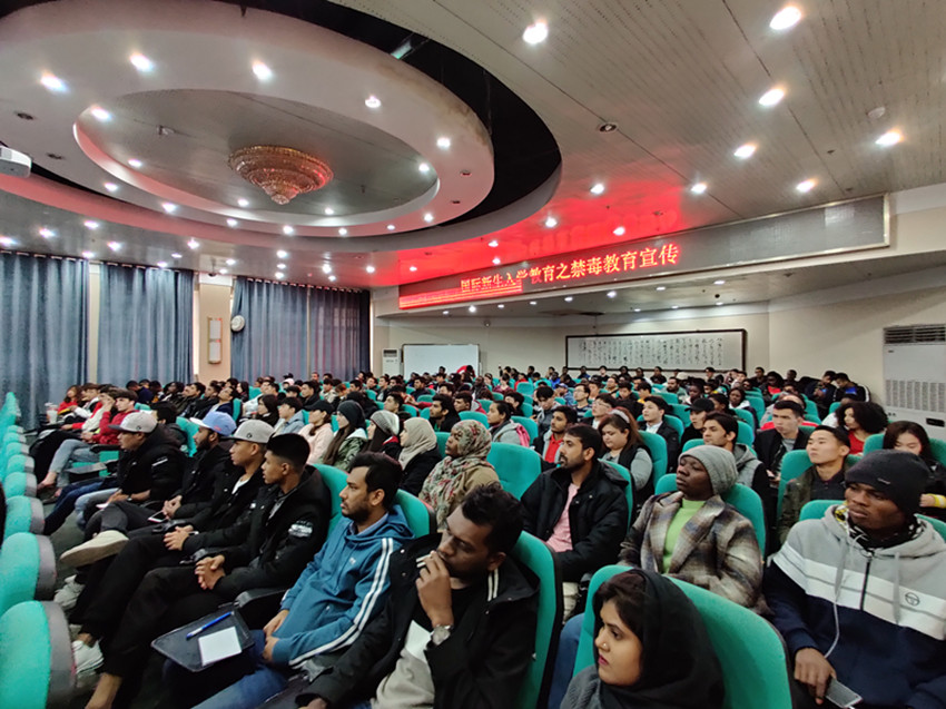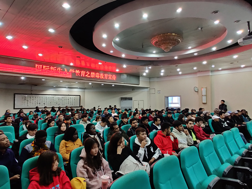 讲座中,宣讲师通过案例、图片、宣传片等多种方式向同学们普及了毒品的种类、制作过程、鉴别方法等,并强调毒品对个人、家庭与社会的巨大危害,告诫大家珍惜来华来校学习生活的机会,严格自律、远离毒品。
