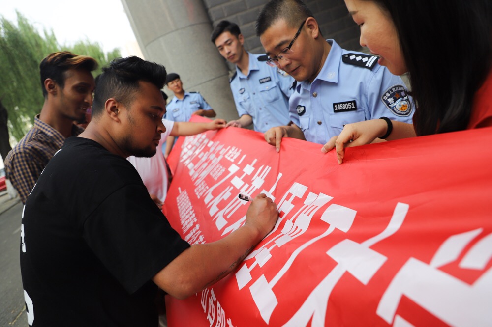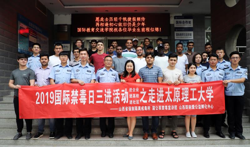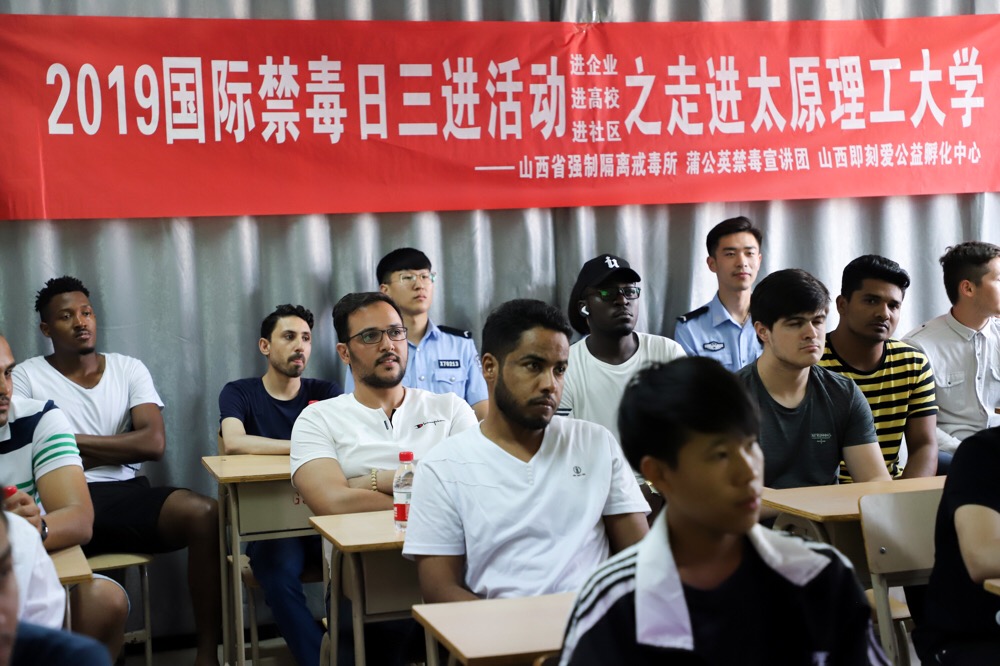 2019年6月25日,在第三十二个国际禁毒日来临之际,suncitygroup太阳集团特邀山西即刻爱公益孵化中心、山西“蒲公英”禁毒宣讲团联合开展禁毒宣传教育活动。来自哈萨克斯坦、阿富汗、巴基斯坦、孟加拉等12个“一带一路”国家四十余名国际学生参与本次活动。