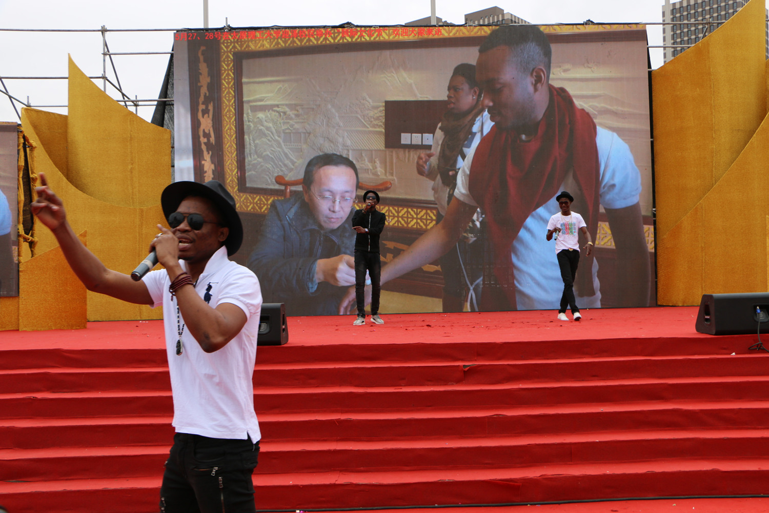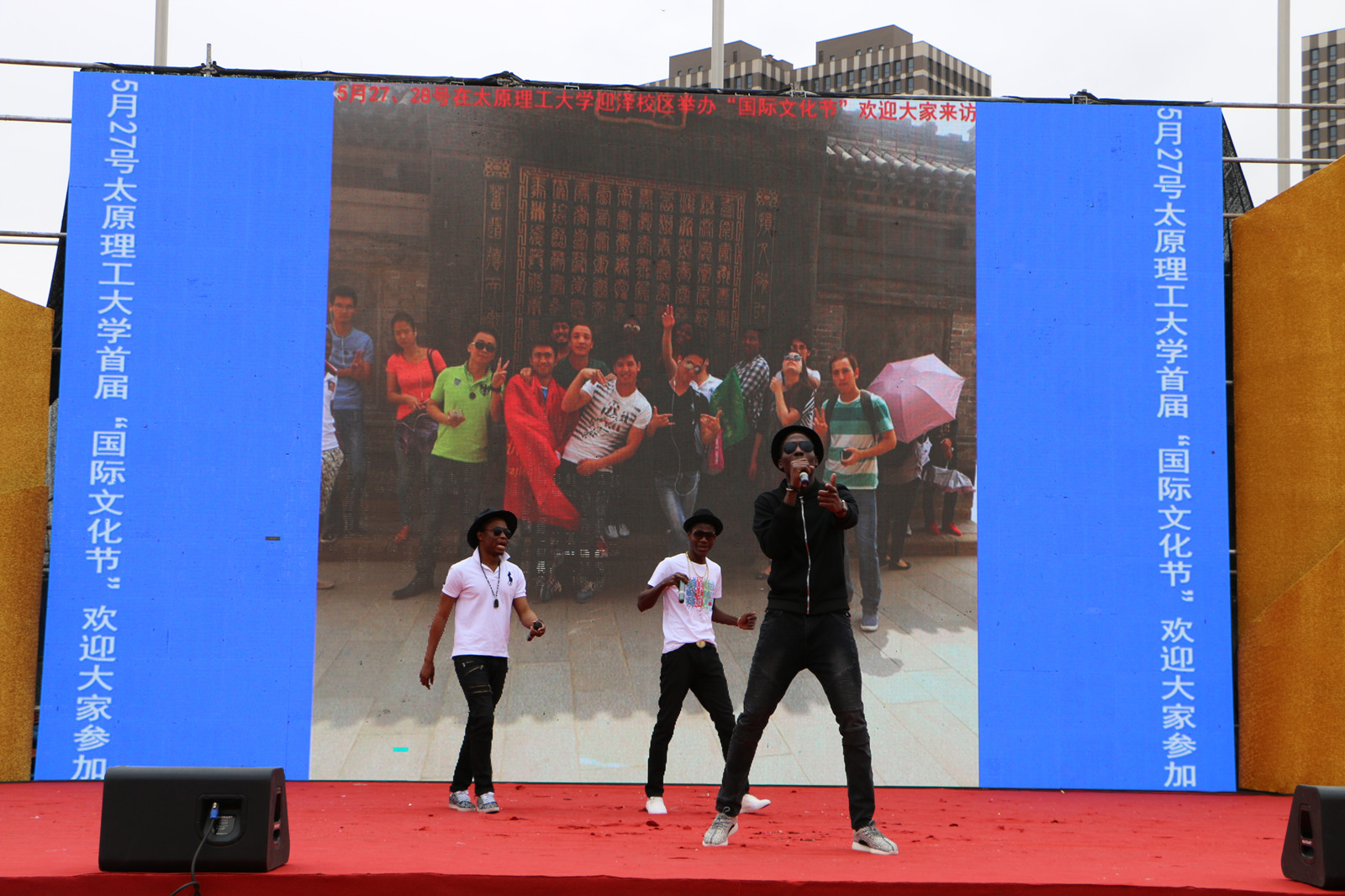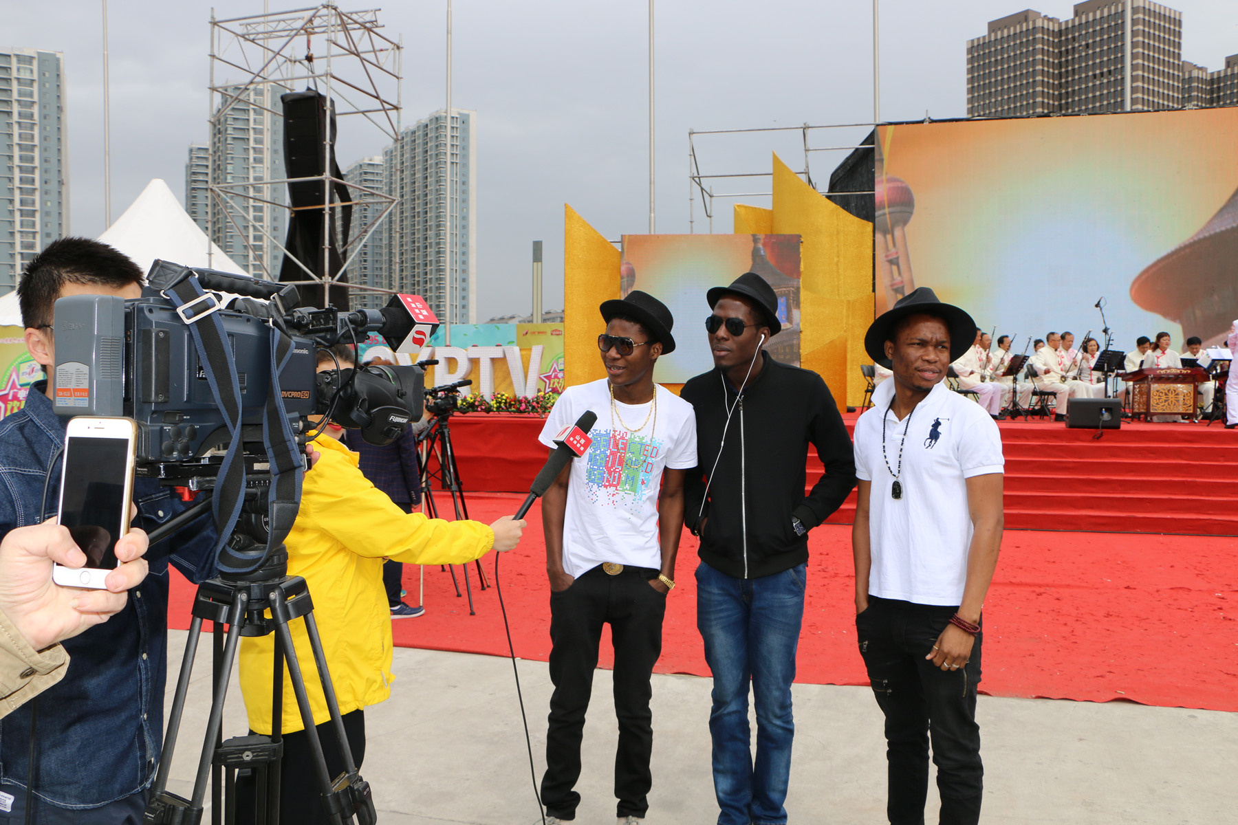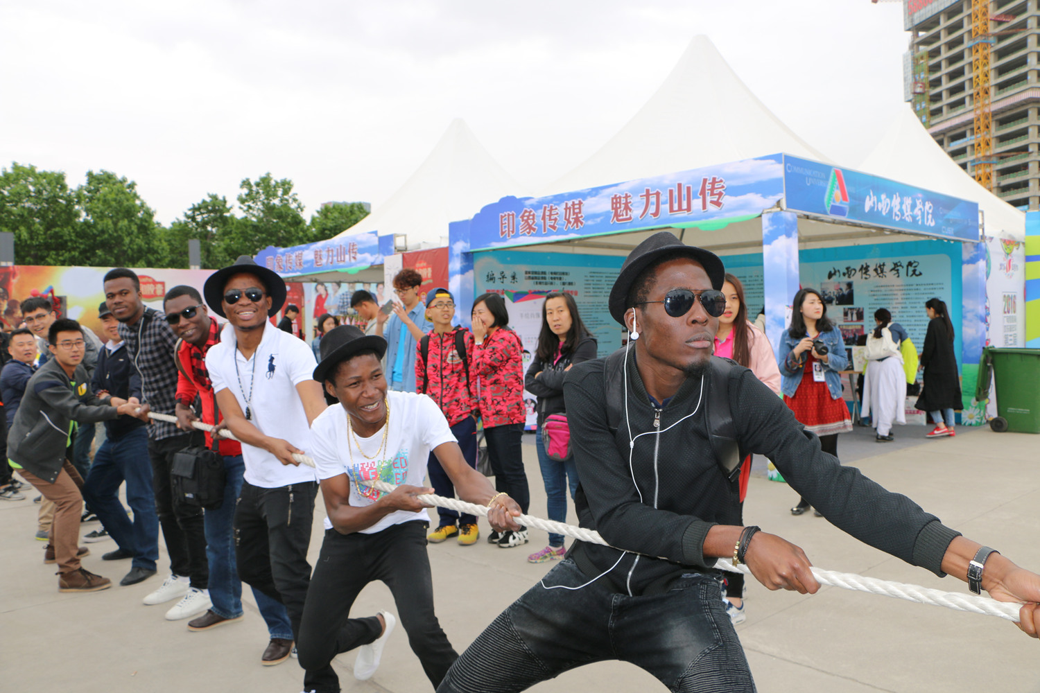 我校国教院师生一行八人赶到太原煤炭交易中心山西广电嘉年华活动现场之后,山西电视台新闻联播栏目组就采访了此次表演的贝宁留学生组合MBL。在现场极具感染力的音乐烘托下,MBL组合在表演的同时,还时时与观众互动,博得现场观众一阵阵热烈的掌声。表演过后,还先后组织留学生参加了拔河比赛、体验虚拟现实等活动。