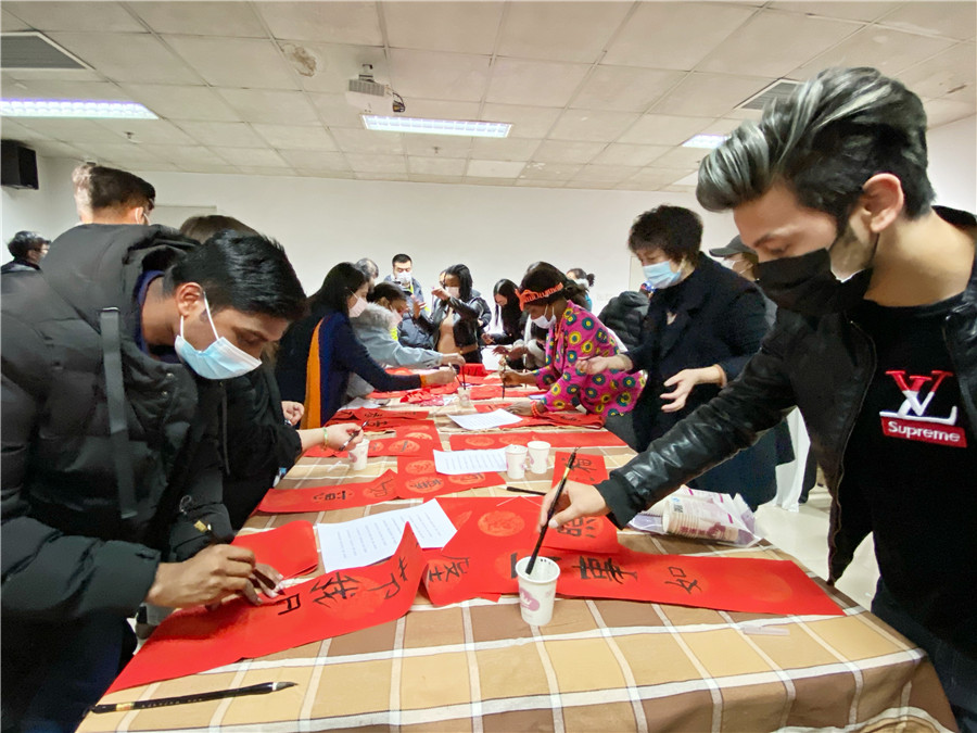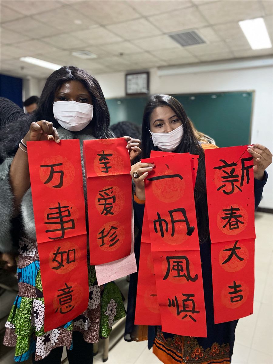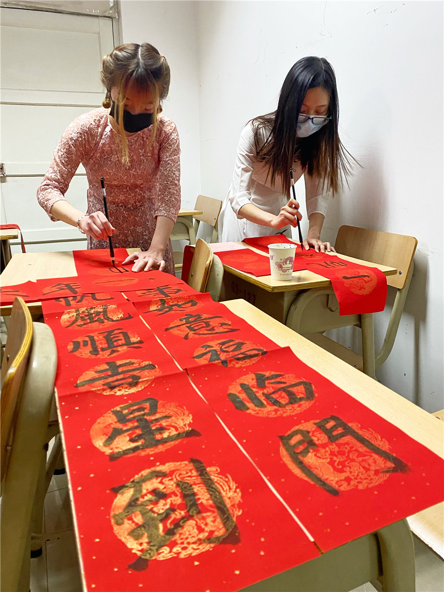 共话中国年、共剪一窗花、共书中国情,活动现场,留学生们和老师一起剪纸,写春联。“太阳成城集团目前有230余名国际学生留在学校,学校在寒假给学生们组织了一系列活动,包括体育类的、文化类的。”suncitygroup太阳集团副院长李文彬表示,通过活动丰富了学生们的假期生活,同时让他们了解中国的传统文化,了解春节习俗。