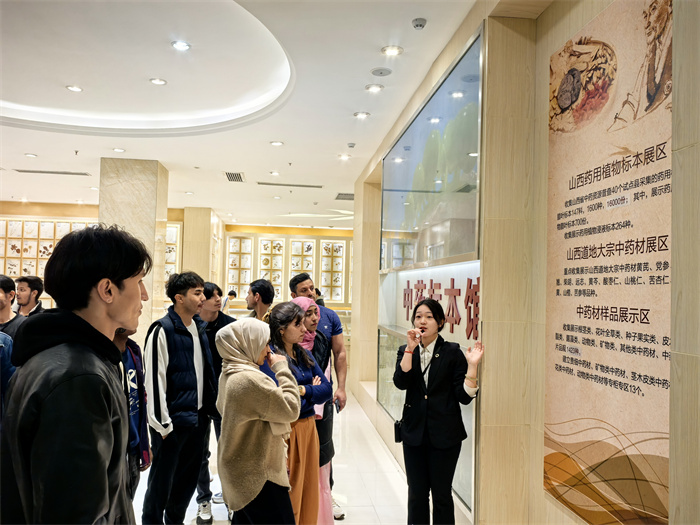 探秘中医药文化:对话千年智慧。4月10日,在山西中医药大学博物馆,国际学生亲身感受“望闻问切”的独特魅力,惊叹于传统医学对生命科学的深刻洞察。从《黄帝内经》古籍到针灸铜人模型,从地道药材标本到现代创新成果,通过直观的展品与生动的讲解,大家深入了解中医药的发展脉络、理论体系及诊疗智慧,学生们认真记录、频频提问。来自巴基斯坦的博士研究生雷海曼(REHMAN ZIA UR)被“药食同源”理念和“五禽戏”吸引:“原来枸杞和生姜既是食物也是药物,养生就在日常细节中,中国文化里的生活智慧太奇妙了!”。