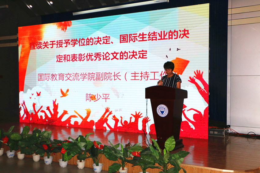 At 4 o'clock on the afternoon of June 22, the lecture hall of Sixian Building in Yingxi Campus was filled with joy of harvest. Teachers and students from all over the world gathered together to hold the 2019 Sino-Foreign Students Graduation Ceremony and Degree Awarding Ceremony of the CIEE. College leaders, graduates, some parents representatives attended the ceremony.