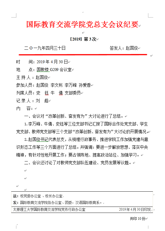 suncitygroup太阳集团党总支会议纪要【2019】第3次