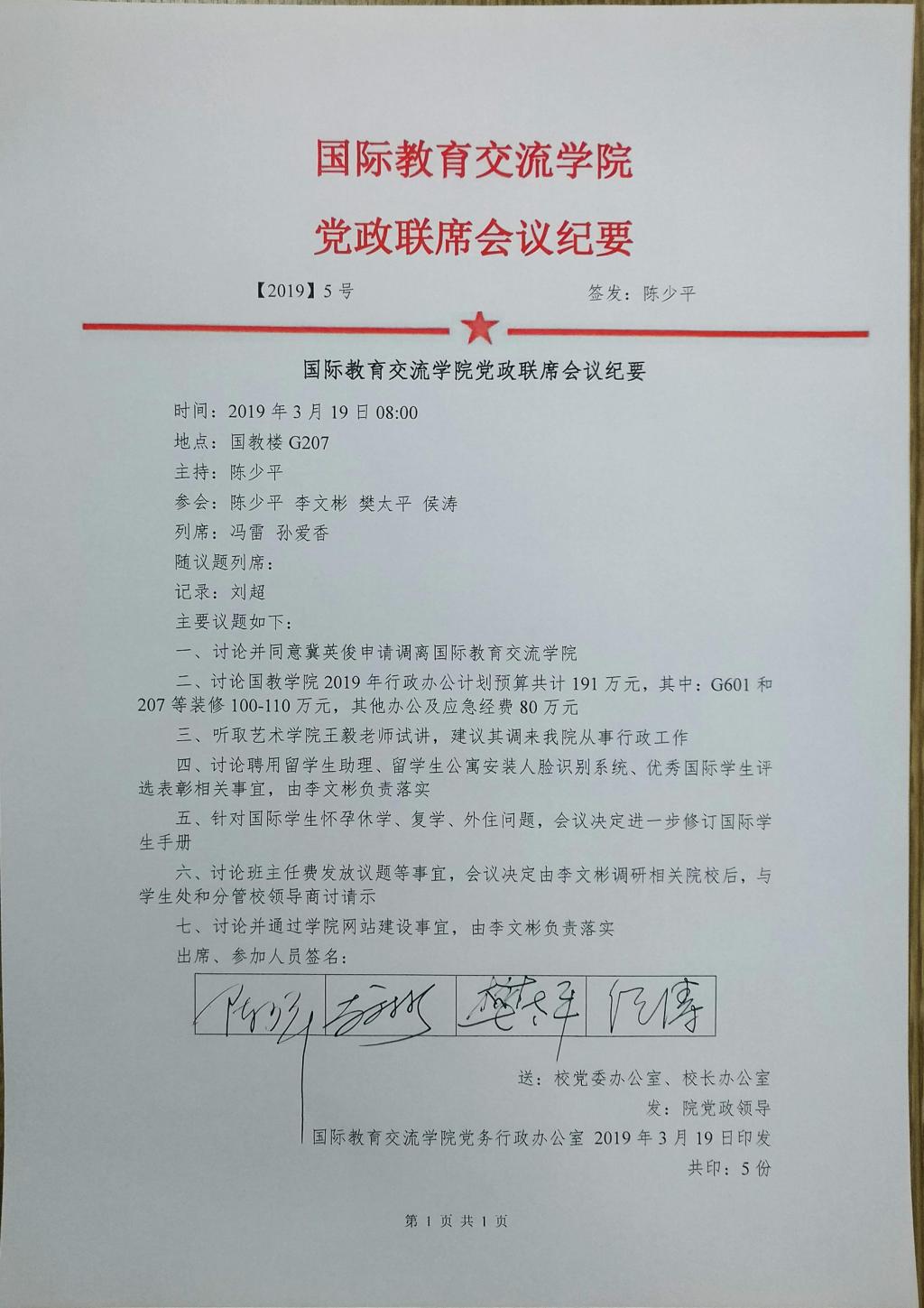 党政联席会议纪要【2019】5号