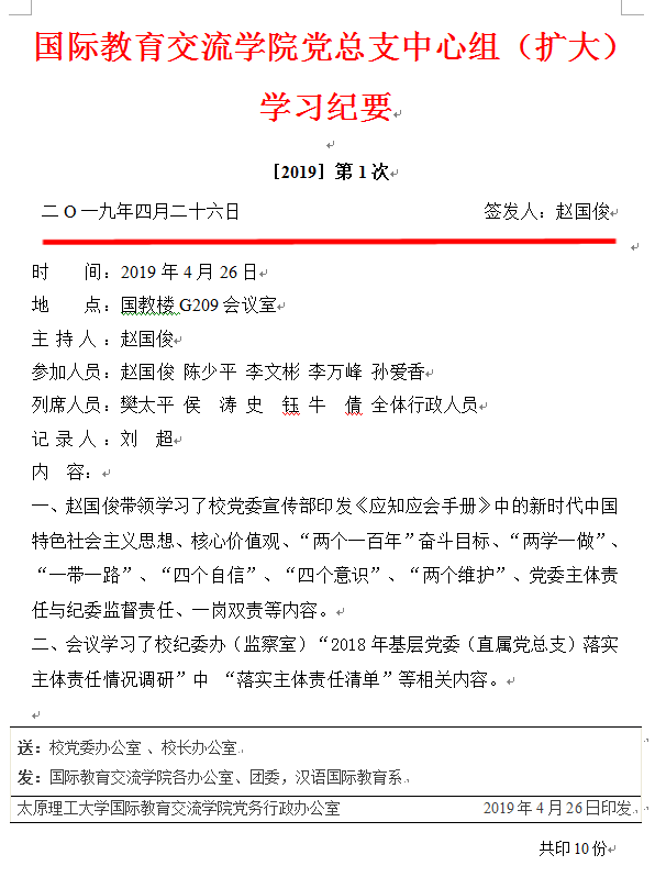 suncitygroup太阳集团党总支中心组(扩大)学习纪要【2019】第1次