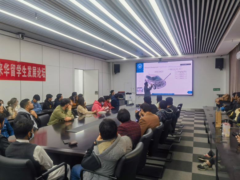 机械与运载工程学院博士研究生富裕作题为“再生式液压减振器和RCCI的外部特性研究”专题报告,结合自身所学的车辆工程专业,从选题背景、研究内容、发展趋势、实际应用等方面进行了阐述,并提出了自己的学术构思。在自由讨论环节,富裕热情详细地回答了与会留学生提出的专业问题,以及在太阳成城集团学习期间的可能遇到的相关问题。