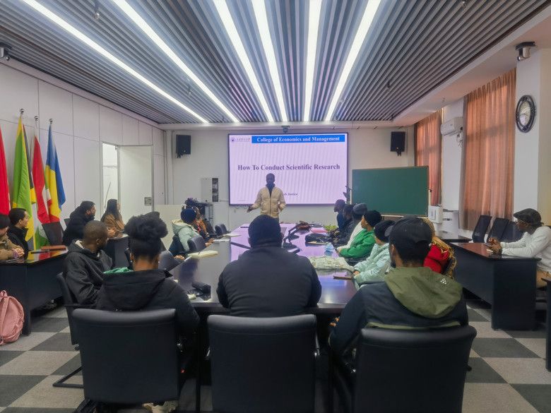 本期论坛的发言嘉宾是来自加纳的管理科学与工程专业博士研究生郑义,发言主题是“HOW TO CONDUCT SCIENTIFIC RESEARCH”即“如何进行科学研究”。近40名留学生到场参加。