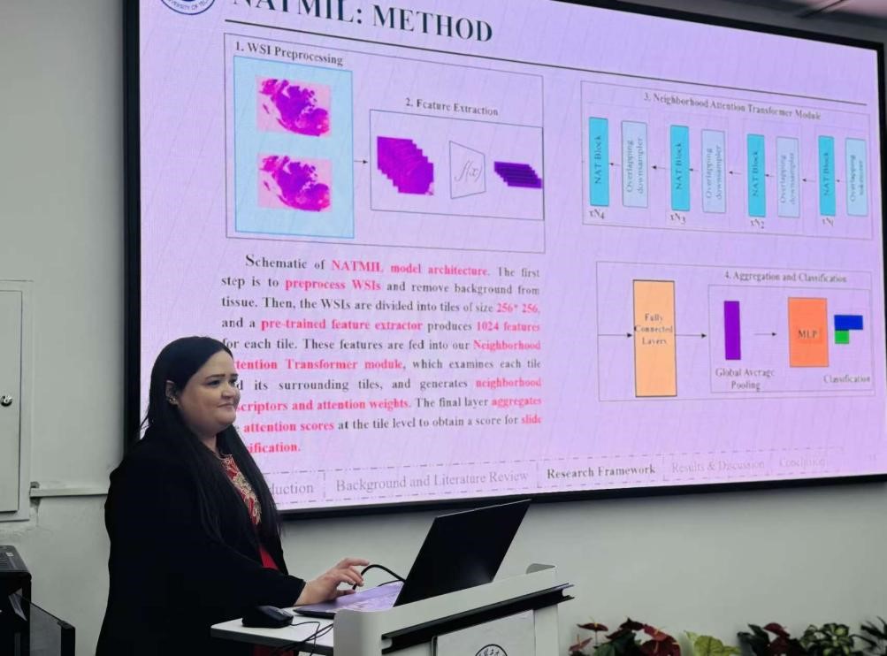 2024年11月8日下午,“Study at TYUT来华留学生发展论坛”2024第6期在太阳成城集团国教楼G601组织举行。巴基斯坦籍来华留学博士生马芮作“基于全玻片病理图像的肺癌亚型分类深度学习方法研究”主题的报告。